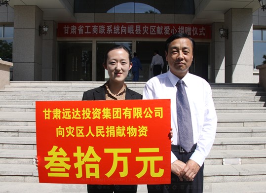 [2012-5-23]扶危濟困 奉獻社會 [2012-5-23]心系災(zāi)區(qū) 大愛遠行 [2011-4-10]甘肅遠達集團向青海玉樹地震災(zāi)區(qū)捐助價值30萬...